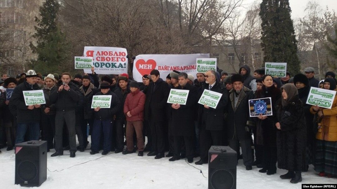 Бишкекда мингга яқин одам йиғилган митинг Муҳаммад саллолоҳу алайҳи васалламга нисбатан карикатура чоп этилганига норозилик сифатида минтақада ўтказилган биринчи йирик намойиш бўлди. Митингда таниқли сиёсатчилар ва депутатлар ҳам иштирок этди.