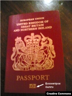 Buyuk Britaniya biometrik pasportining ichiga o'rnatilgan elektron mikrochip (by Flickr CC user Kai Hendry)