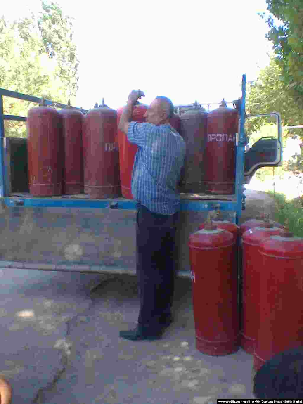 Наманган вилояти Поп тумани Пунгон шаҳарчасида аҳолига газ баллонлари тарқатилмоқда.