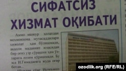 Бухородаги “Grand Bukhara” меҳмонхонаси сифатсиз хизмат кўрсатгани боис суд томонидан жавобгарликка тортилди (“Истеъмолчи”, 6 апрель). Меҳмонхона маъмурияти андижонлик Илшат Гимадаевга кўнгилдагидек хизмат кўрсатмаган. Боз устига, мижоз Гимадаев 7-қаватдан тушаётганда лифтда 40 дақиқа қамалиб қолган. Лифт созлангач, у поездга аранг етиб олган. Шундан кейин И. Гимадаев Истеъмолчилар ҳуқуқини ҳимоя қилиш жамияти ишонч телефонига мурожаат қилган. Суд меҳмонхона мижозга 130 минг сўм маънавий зарар тўлаши ҳақида қарор чиқарган.