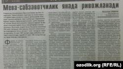 Наманган вилоятида жорий йил май-октябрь ойларида мева-сабзавот маҳсулотларини экспорт қилиш режаси бажарилмади (“Ҳуқуқ”, 29 декабрь).