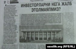 Oliy Majlis Qonunchilik palatasida deputatlar qarshisida hisobot bergan Investitsiyalar va tashqi savdo vaziri Sardor Umurzoqov mamlakatga xorij sarmoyasini jalb etishga to‘siq bo‘layotgan jiddiy muammolar mavjudligini tan oldi (“Jamiyat”, 8 fevral). Qayd etilishicha, respublikadagi har bitta tumanda investorlarni jalb qilish, ularga joy ajratish borasida sustkashlikka yo‘l qo‘yilmoqda. Joylardagi ichki sarmoyaga mas’ul mansabdorlar hozirga qadar faqat statistika bilan shug‘ullanib kelmoqda. Investitsiya bo‘yicha hokim o‘rinbosarlari esa qanday ishlashni bilmaydi. Ayrim viloyatlarda erkin iqtisodiy zonalarning aniq hisob-kitobsiz joylashtirilishi, ayrim faoliyat turlari uchun sun’iy imtiyozlar berilishi sog‘lom raqobat muhitining buzilishiga olib kelmoqda. Ayrim erkin iqtisodiy zonalarda muhandislik-kommunikatsiya tarmoqlariga ulanish va infratuzilma ob’ektlarini qurish oxiriga yetkazilmayotgani, tijorat banklarining tashabbus ko‘rsatmayotgani ham sarmoyadorlarni jalb etishga to‘sqinlik qilmoqda.