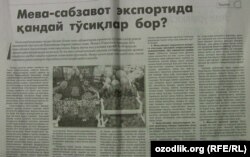 Ўзбекистонда йилига 20 миллион тоннадан зиёд мева-сабзавот маҳсулотлари етиштирилмоқда, бироқ шунча маҳсулотнинг 70-80 фоизи қайта ишланмасдан қолмоқда (“XXI аср”, 28 март). Пишиқчилик мавсумида мева-сабзавот нархи арзон бўлиб кетади, уларни сақлаш эса каттагина харажат талаб қилади. Деҳқон ва фермерлар қўлида маҳсулот қолиб кетаётгани нафақат уларнинг оилавий бюджети, мамлакат иқтисодиётига ҳам салбий таъсир кўрсатмоқда. Қайд этилишича, мева-сабзавот маҳсулотларини хорижлик истеъмолчига етказиб бериш тизими ҳали-ҳамон шаклланмаган. Бу борада Хитой, Россия, Қозоғистон, Туркия каби давлатлар билан ҳамкорликда савдо уйлари ташкил қилиш лозим. Шунингдек, чет эллик харидорлар талабига жавоб берадиган сабзавот уруғи, дарахт кўчати етиштириш ва унинг сифатини кафолатловчи тизим яратиш муҳимлиги ҳам таъкидланган.
