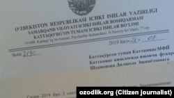 Жорий йил 3 сентябрь куни Каттақўрғон ИИБга менга нисбатан ҳақоратли муносабатда бўлингани юзасидан ариза бердим. Эртасига Ойжон маҳалласи участка нозири менга қўнғироқ қилди. Учрашганимизда у менга аризамни қайтариб олишни сўради. Мени ҳақорат қилган муаллима апрель ойида ҳам бир фуқаро билан жанжаллашиб судланган экан. Нозирнинг тушунтиришича, бу гал жиноий иш очишга тўғри келар экан. Мен “йўқ, қонун олдида жавоб берсин” дедим. Аммо кейин ишни холис ўрганмай, босди-босди қилиб юборишди. Мени ҳақорат қилганларга қонуний жазо берилишини сўрайман”.