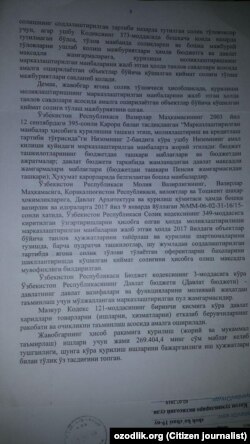 ПЕШКЎ. “Бухоро вилояти Пешкў туманидан мактуб йўлламоқдамиз. “Элит строй қурилиш монтаж” МЧЖ қурилиш соҳасида иш олиб боради. Жамиятимиз 2018 йилда жорий таъмирлаш бўйич 269,4 милллион сўмлик шартнома имзолаганди. 2018 йилда қурилиш ишлари бажарилган ва шартномада кўзда тутилган маблағ, ўша пайтда амалда бўлган қонунчиликка кўра¸ ҚҚСсиз олинган. Аммо Пешкў туман давлат солиқ идораси иқтисодий судга даъво билан мурожаат қилиб, 44,9 миллион сўмлик ҚҚС ундиришни талаб қилган. Когон туман иқтисодий судининг 2019 йил 25 июндаги ҳал қилув қарори билан корхонамиздан кўрсатилган миқдордаги ҚҚСни ундириш белгиланди. Тадбиркорларни очиқчасига мажбурлашaяпти, “Тўламасанг бошқа текширувлар ўтказиб тўлаттирамиз” дейишмоқда...”